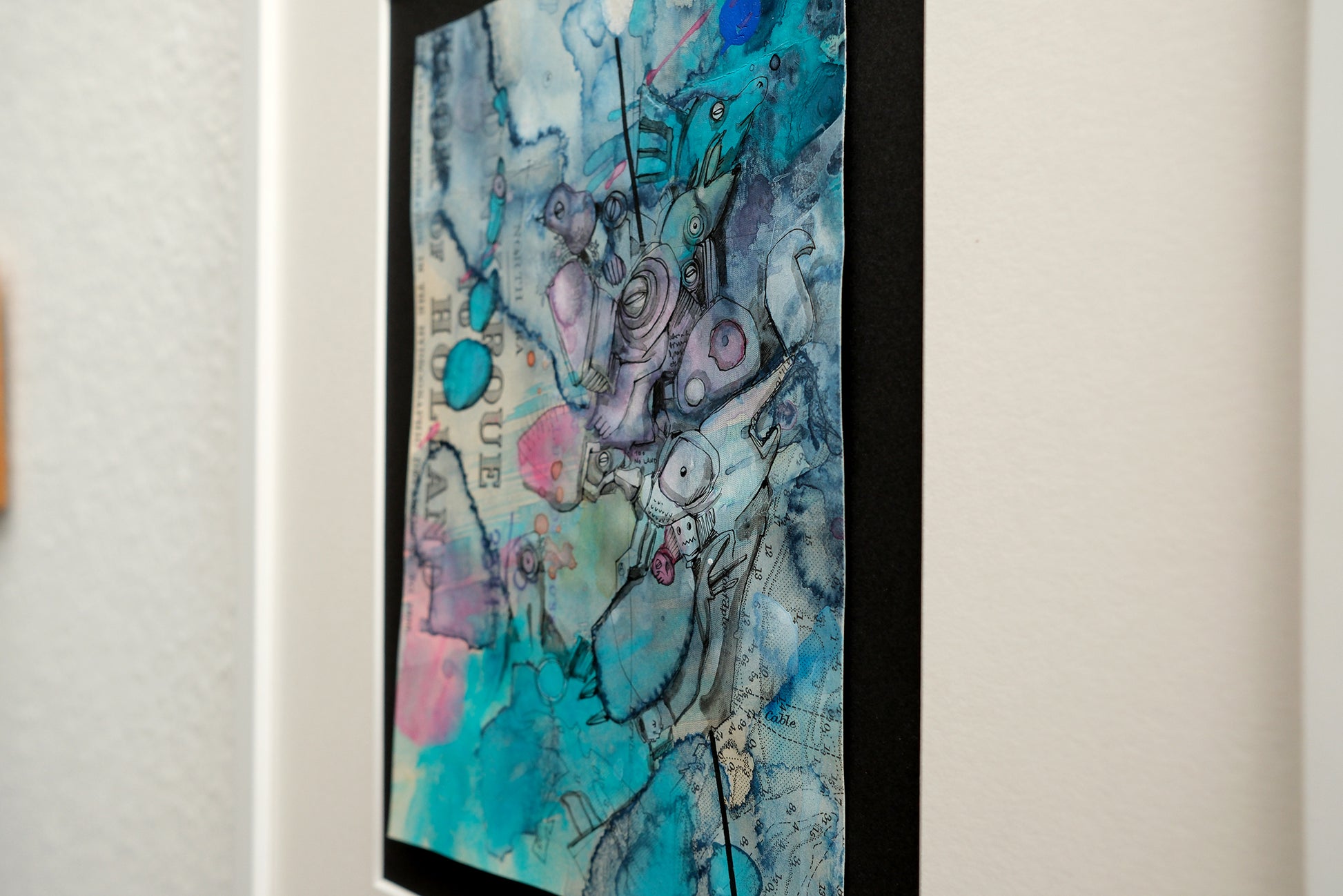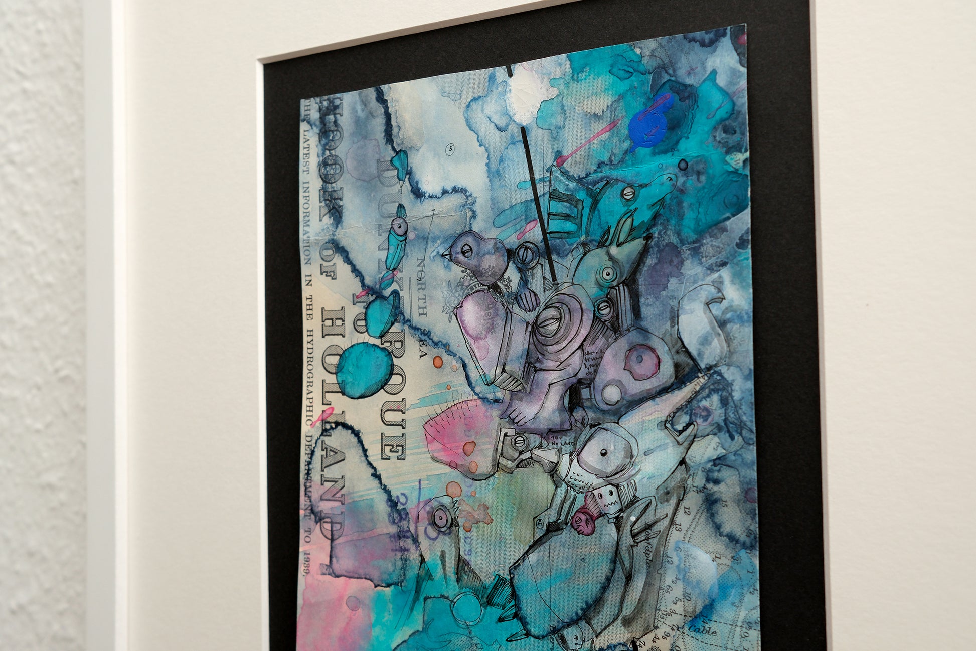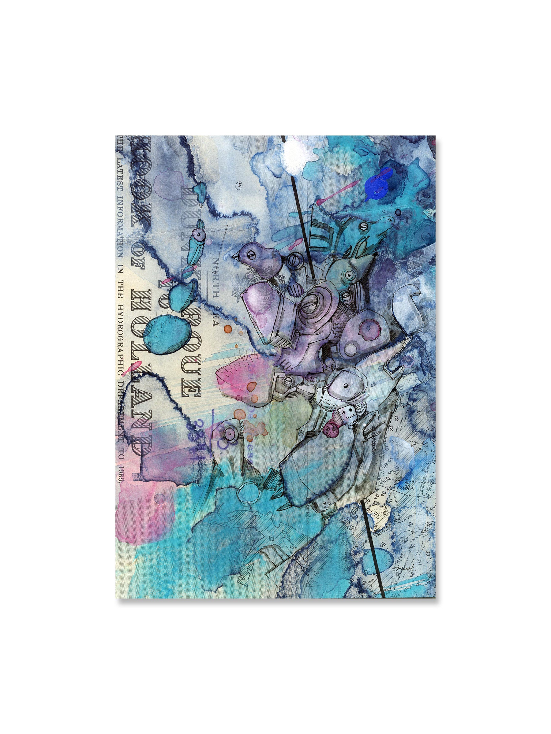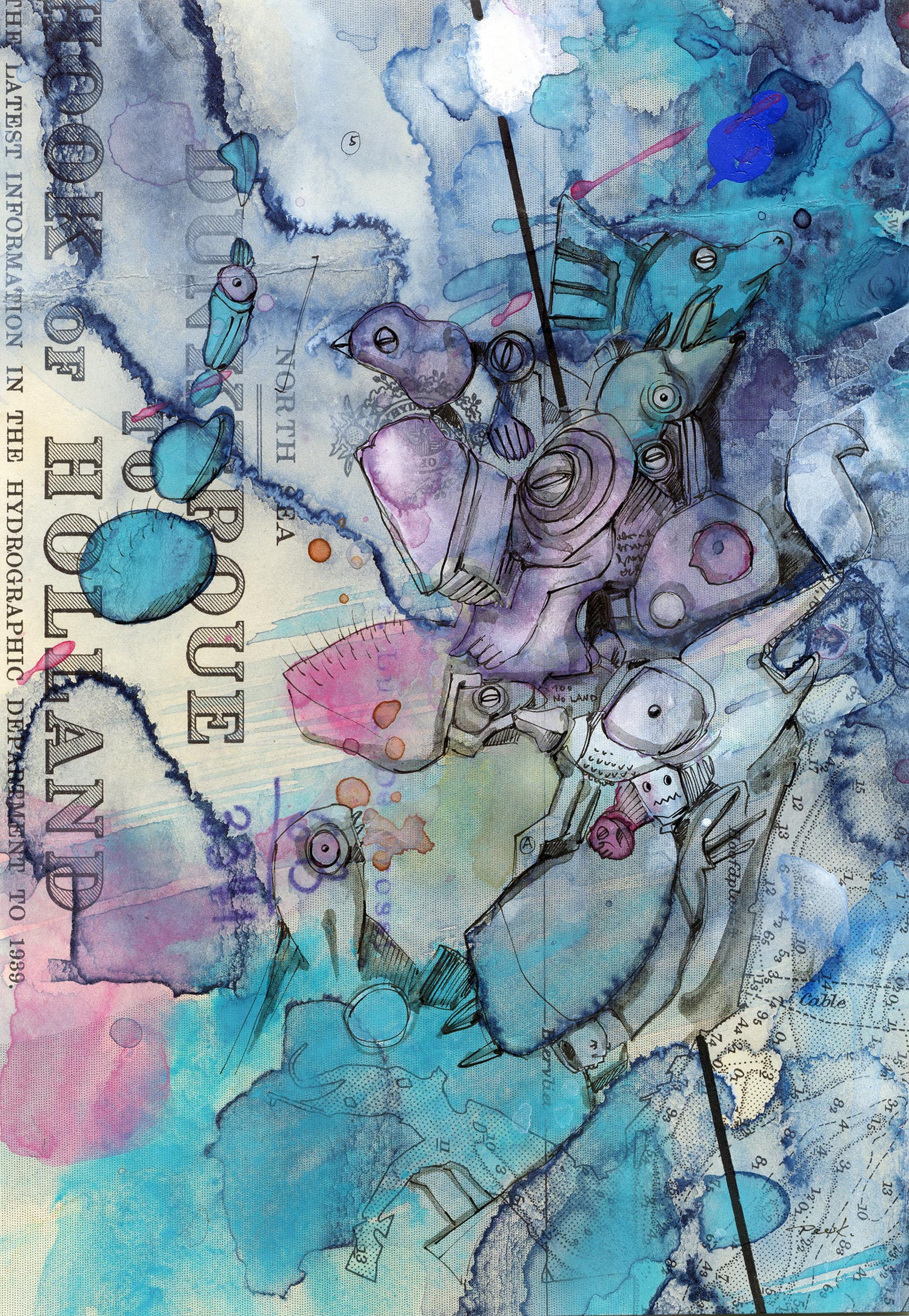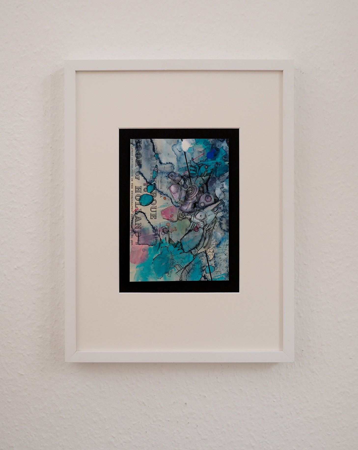 Watercolor/acrylic/pigment ink on paper (atlas map)