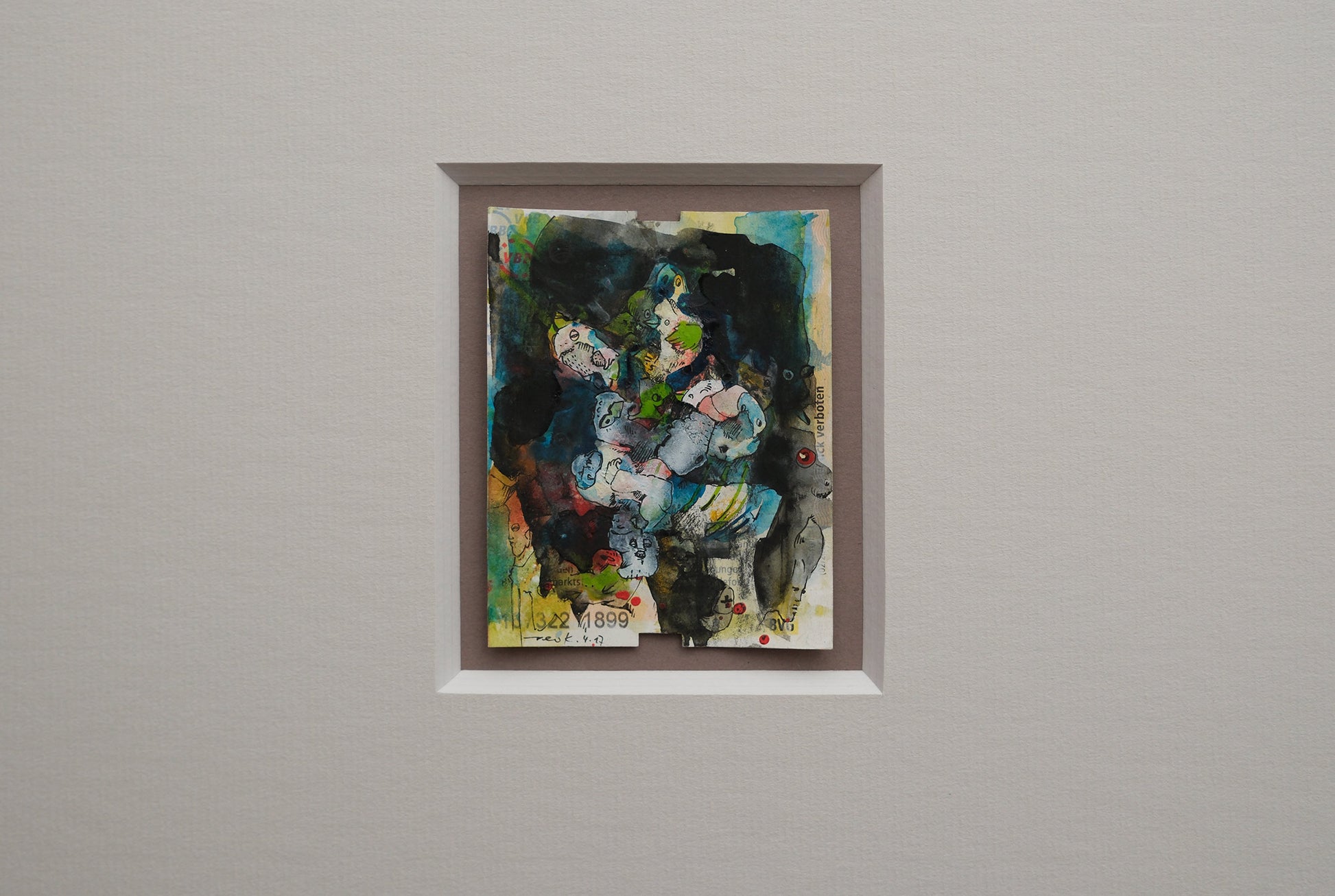 "1899", eine Aquarell-Übermalung auf einer Berliner BVG-Fahrkarte aus dem Jahr 2017, repräsentiert Peer Kriesels fortlaufende künstlerische Untersuchung der Schnittstelle zwischen analoger Vergangenheit und digitaler Gegenwart. In diesem Werk transformiert Kriesel ein alltägliches, kurzlebiges Objekt urbaner Mobilität in einen Träger zeitgenössischer Kunst und sozialer Kommentare.