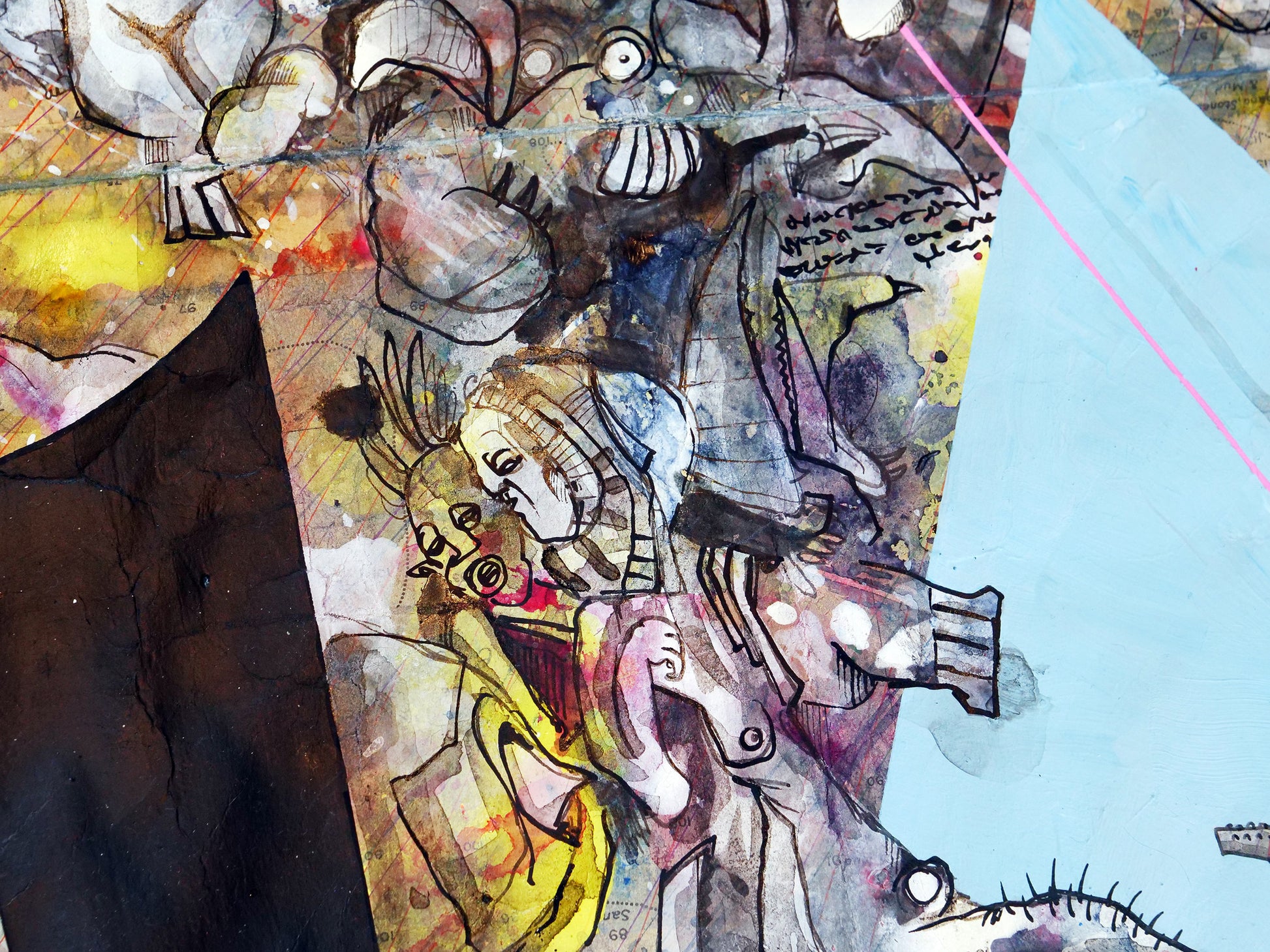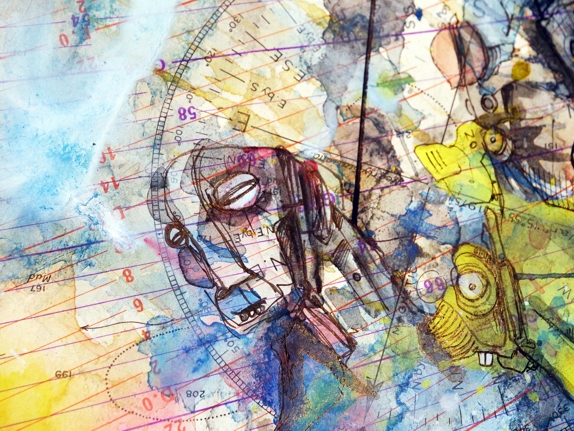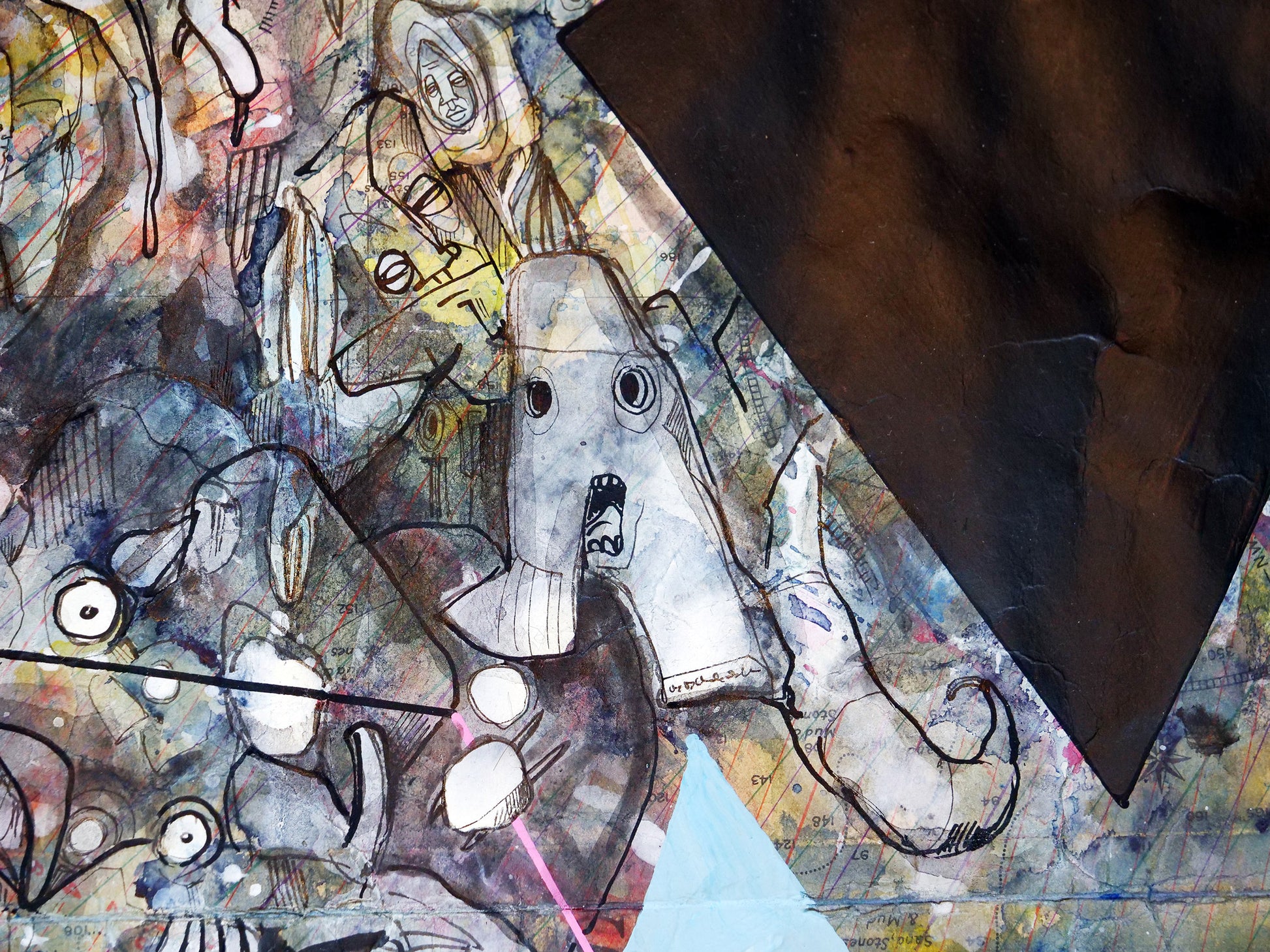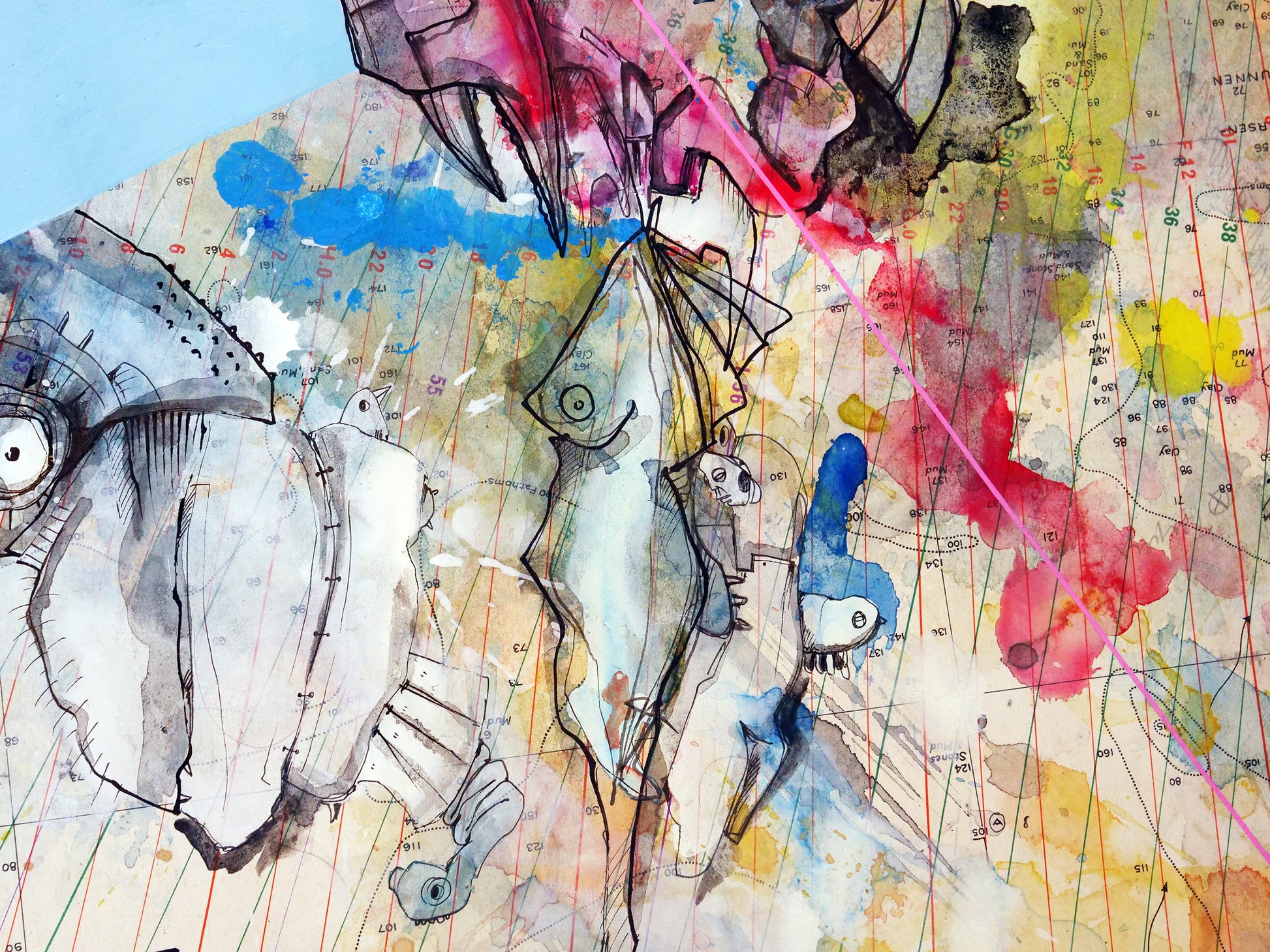 Watercolor/acrylic/pigment ink on paper (atlas map)