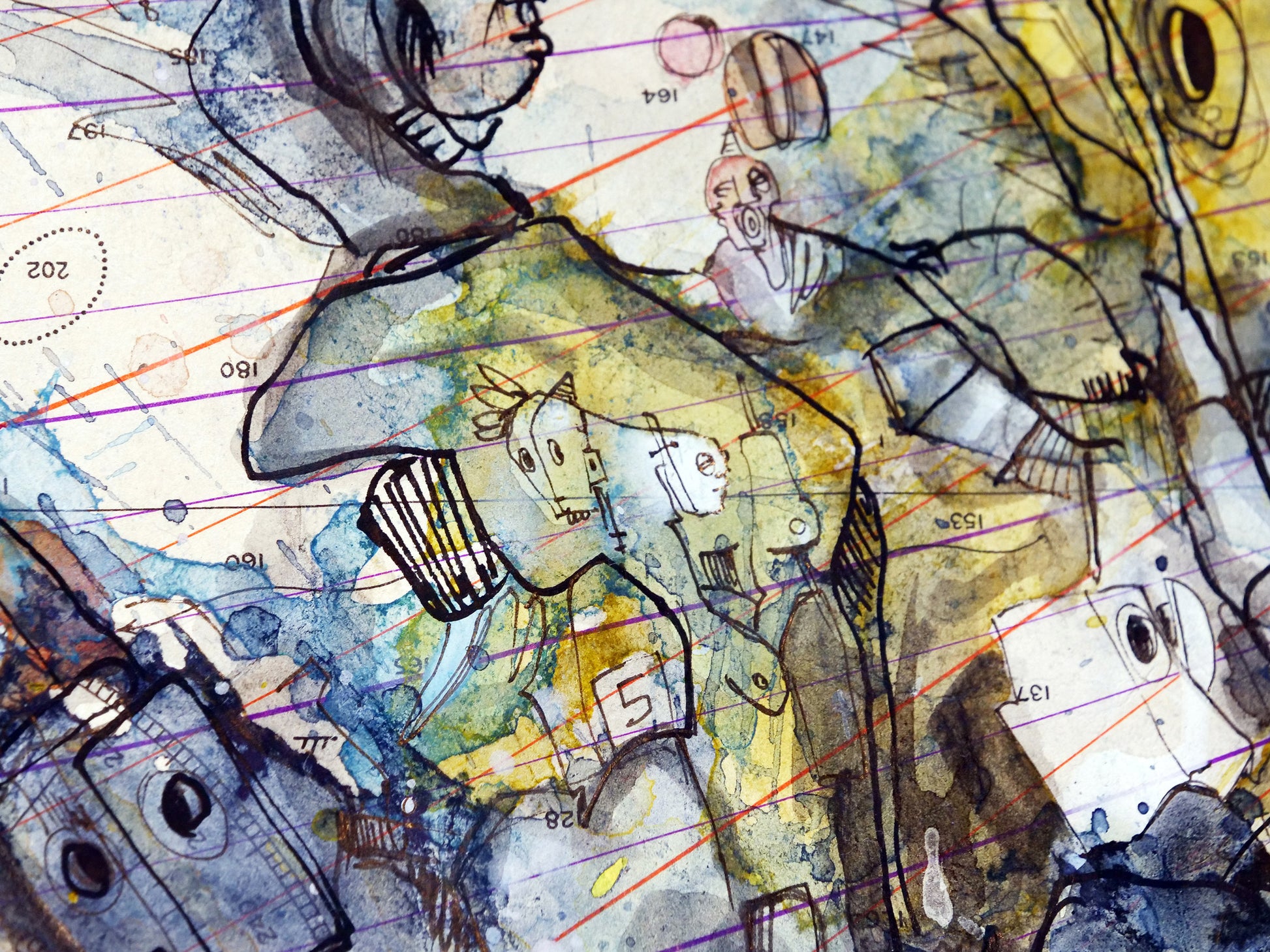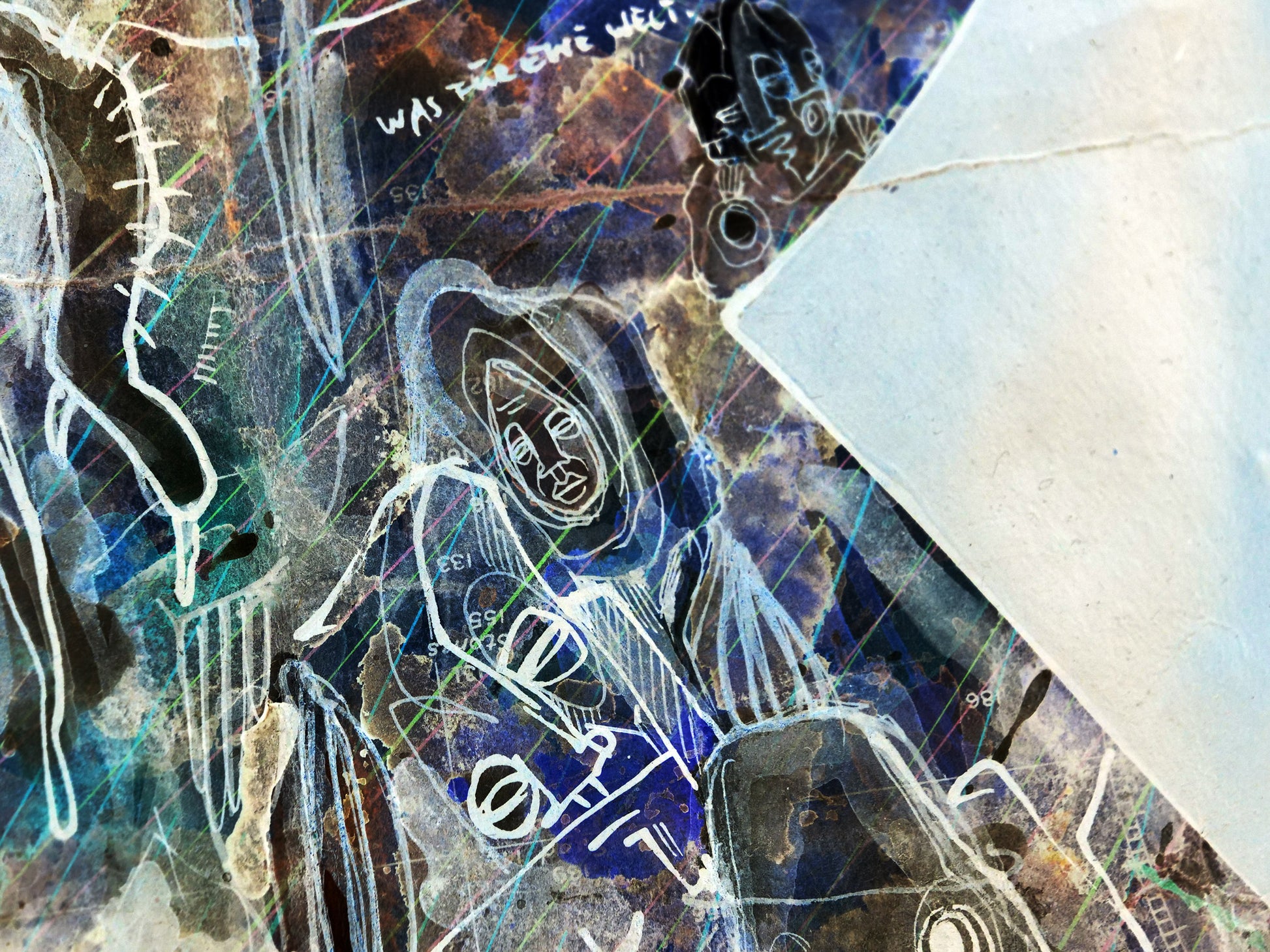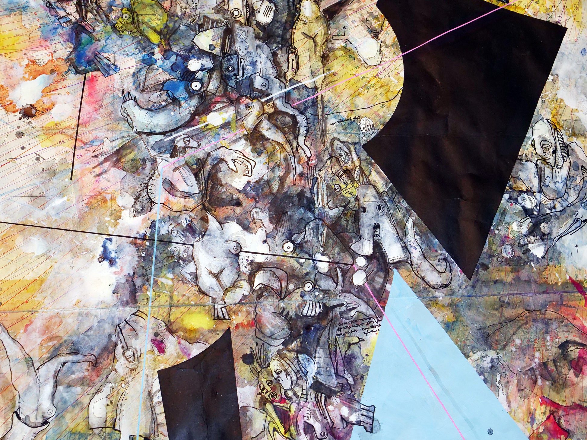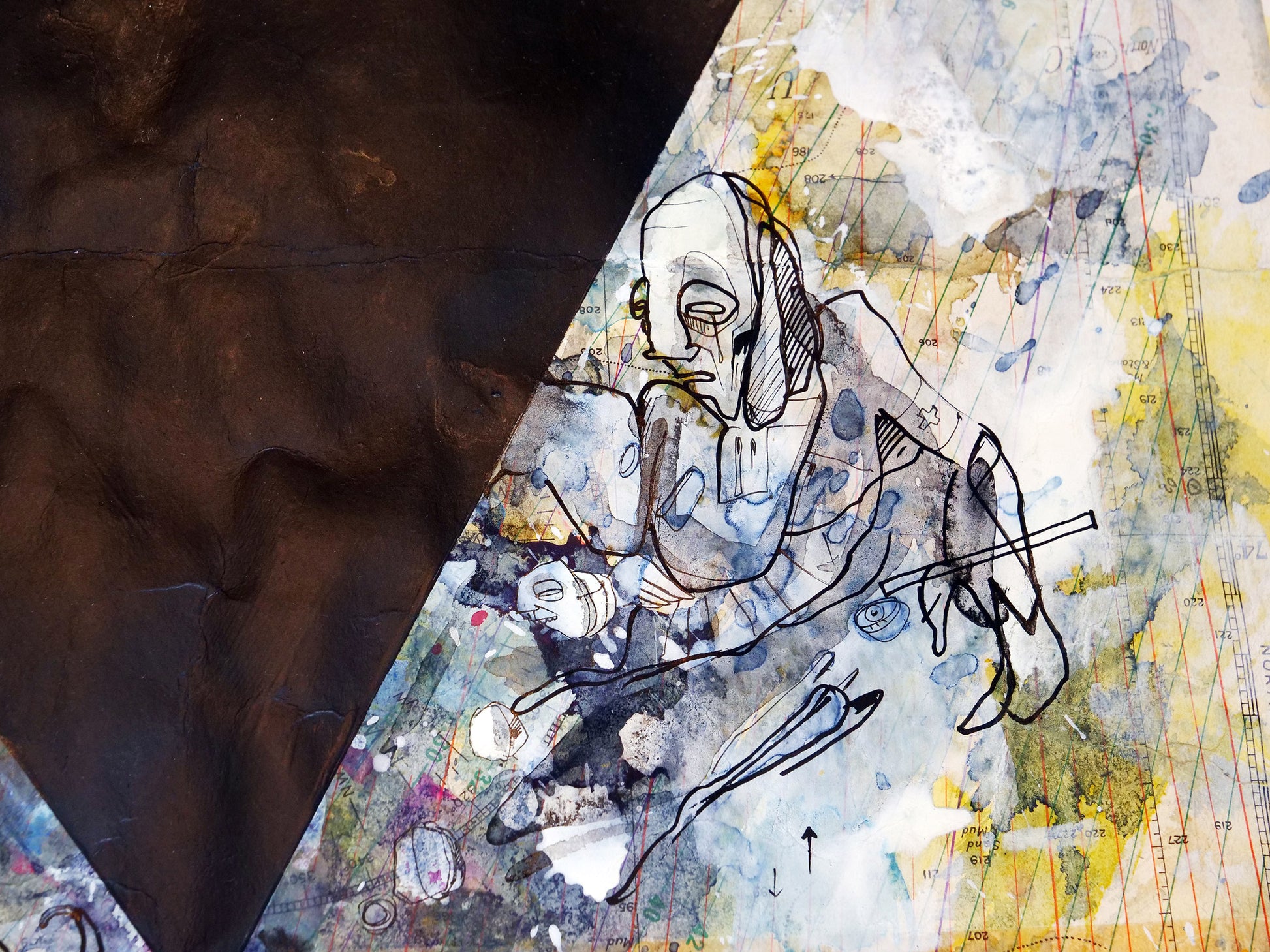 Watercolor/acrylic/pigment ink on paper (atlas map)