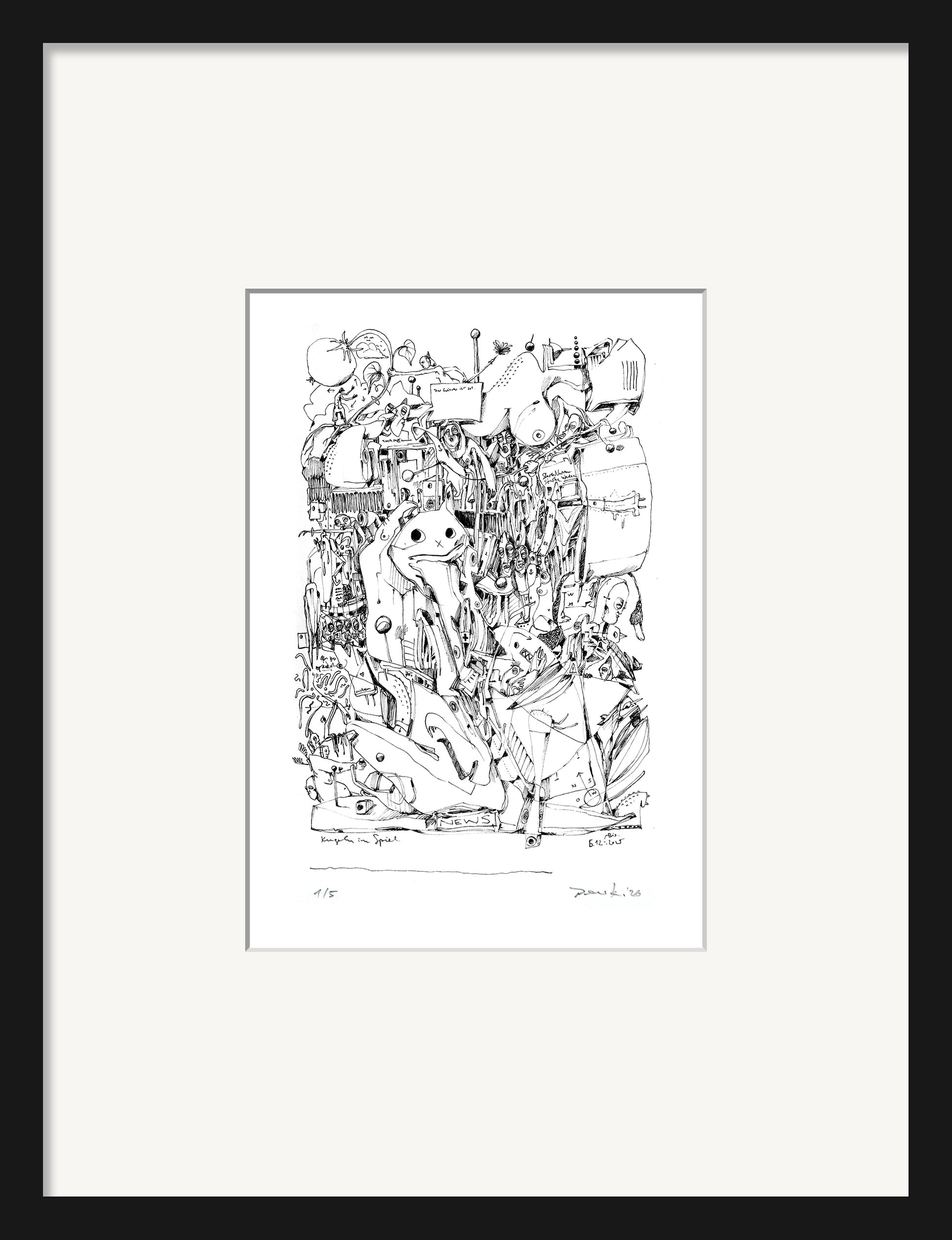 Jeder Druck dieser Edition ist ein Fenster in Kriesels kreatives Universum. Die feinen Linien und komplexen Kompositionen laden den Betrachter ein, immer neue Details zu entdecken und sich auf eine meditative Reise durch die Bilderwelt zu begeben. Hier treffen Kriesels charakteristische "Fratzen" auf mystische Symbole, verschmelzen digitale Glitches mit klassischen Tarot-Motiven und erzeugen so eine faszinierende Spannung zwischen Tradition und Innovation.