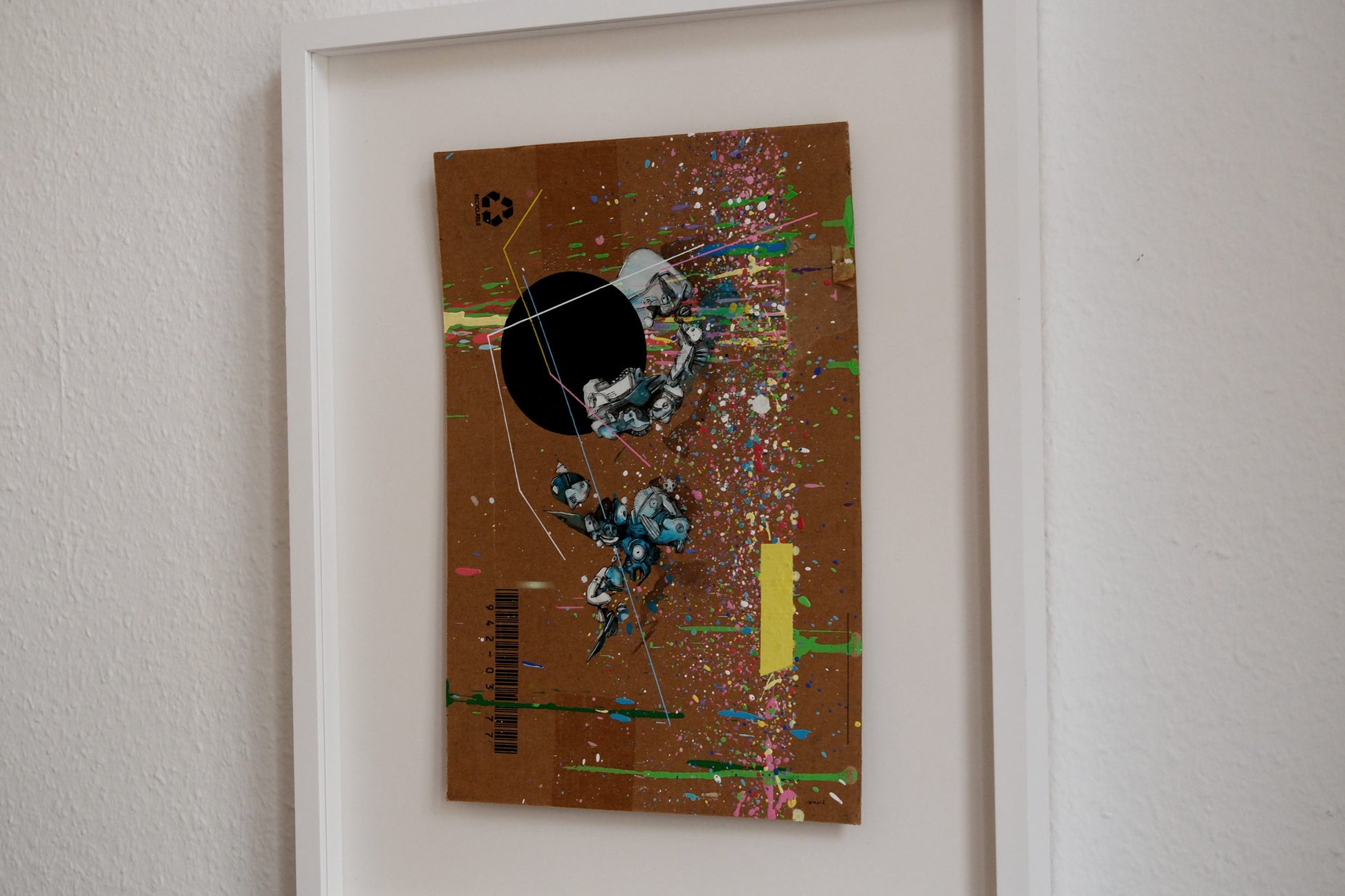 Diese "Übermalung" ist Teil einer größeren Serie, in der Kriesel alltägliche, oft als wertlos betrachtete Materialien in beeindruckende Kunstwerke verwandelt. Durch diesen Prozess hinterfragt er nicht nur den Wert von Alltagsgegenständen, sondern reflektiert auch kritisch unsere von Bildern und Informationen überflutete digitale Gesellschaft.