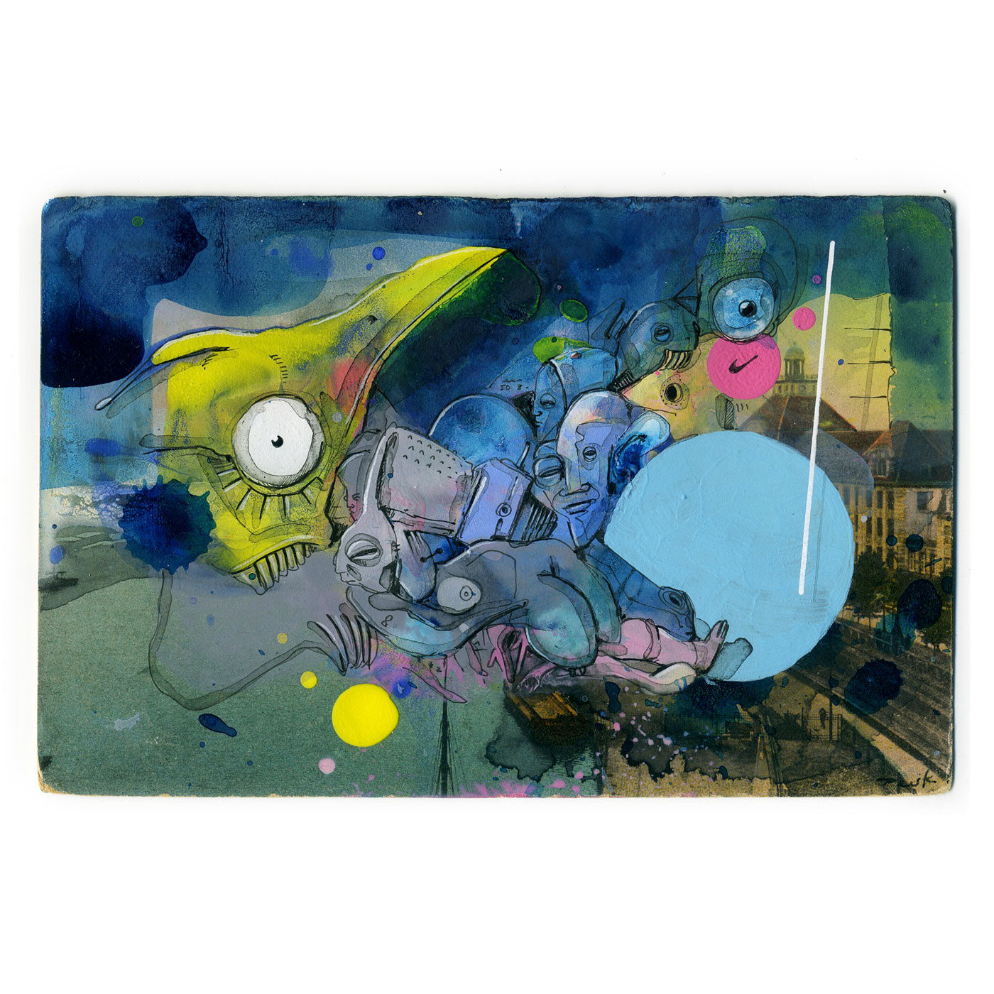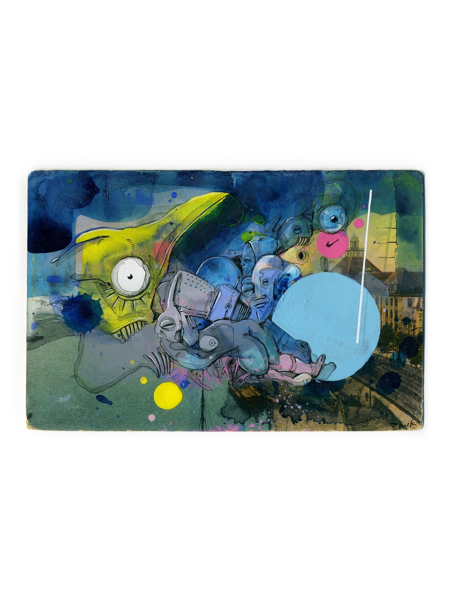 Aquarell/Acryl/Pigmenttinte auf Papier (Postkarte)