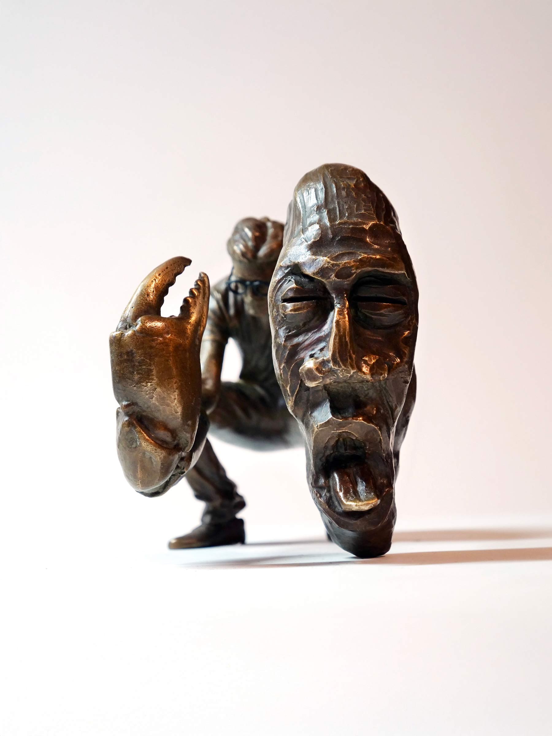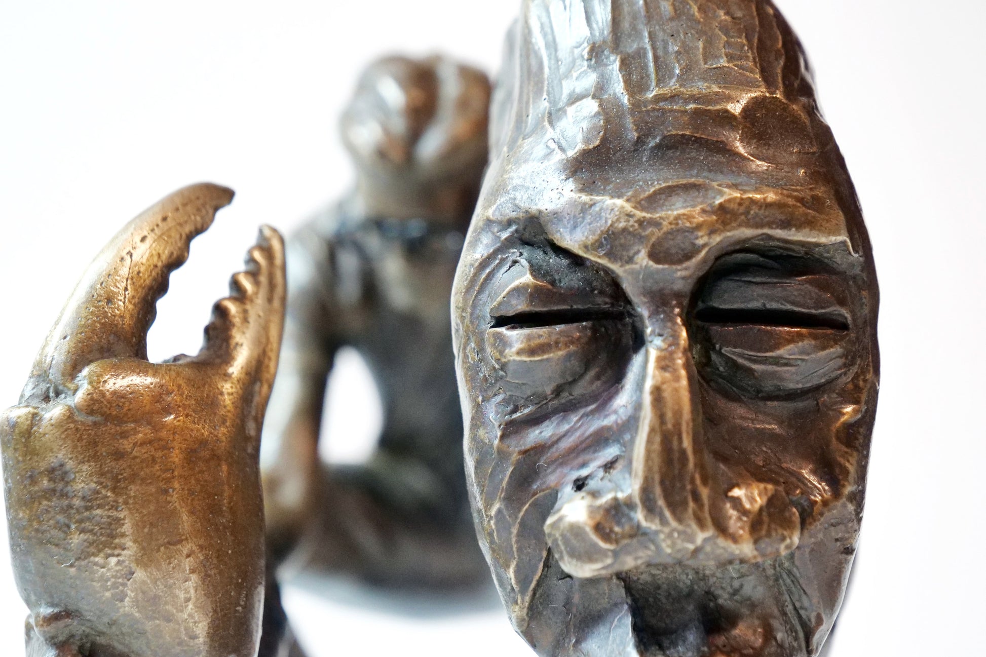 Die Skulptur greift Kriesels charakteristische "Fratzen" auf - jene surrealen, oft skurrilen Figuren, die in seinen Zeichnungen und Installationen eine zentrale Rolle spielen. In Bronze gegossen, gewinnen diese Gestalten eine neue Dimension von Beständigkeit und kultureller Wertigkeit. Das Material Bronze, traditionell mit klassischer Bildhauerei und zeitloser Kunst assoziiert, verleiht Kriesels zeitgenössischer Formensprache eine überraschende Gravitas.