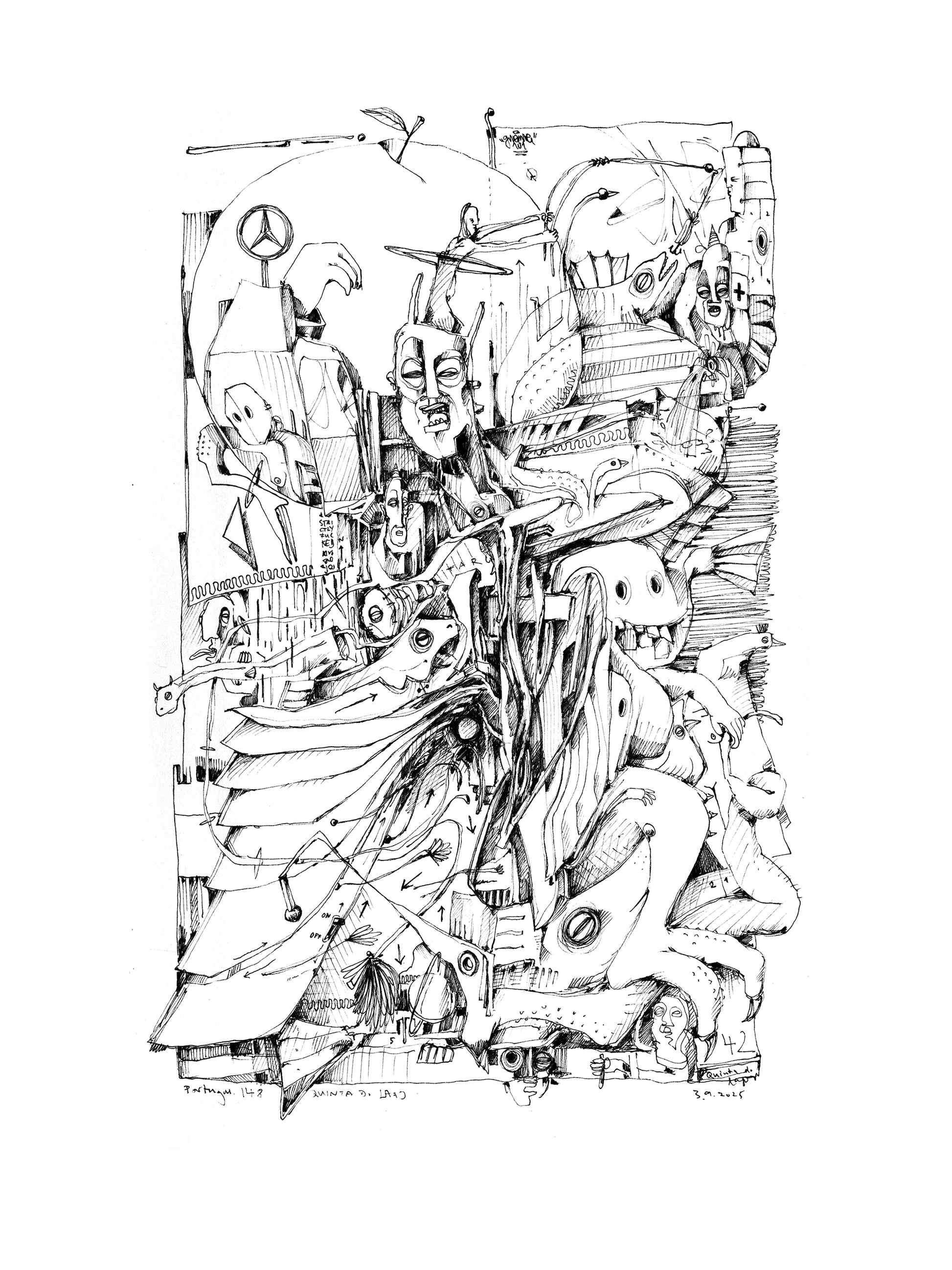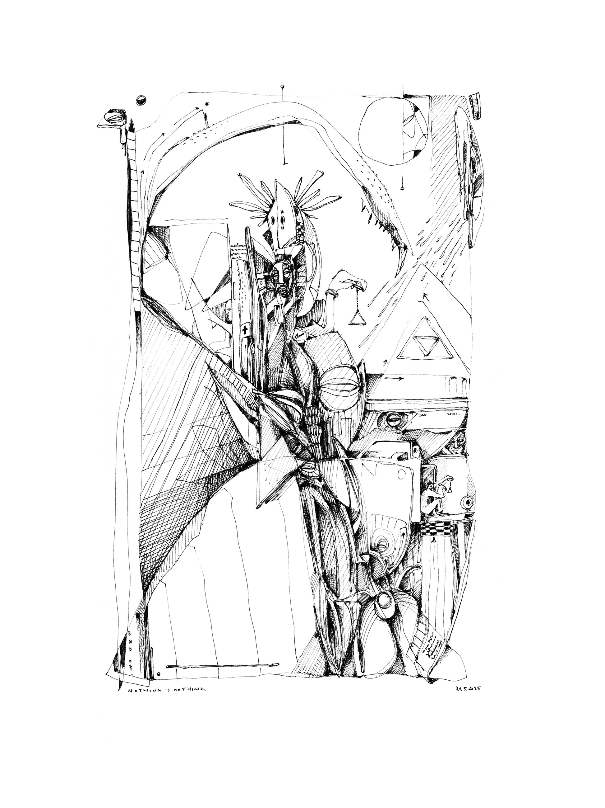 Diese beeindruckenden Drucke auf hochwertigem Hahnemühle-Papier fangen die Essenz von Kriesels visionären Zeichnungen ein, die ursprünglich in einem Skizzenbuch aus dem Jahr 2025 entstanden. Inspiriert von der Idee, eine Motivwelt für ein Tarot-Kartendeck zu erschaffen, knüpft Kriesel an die reiche Tradition der Surrealisten an, die sich ebenfalls vom Tarot faszinieren ließen.