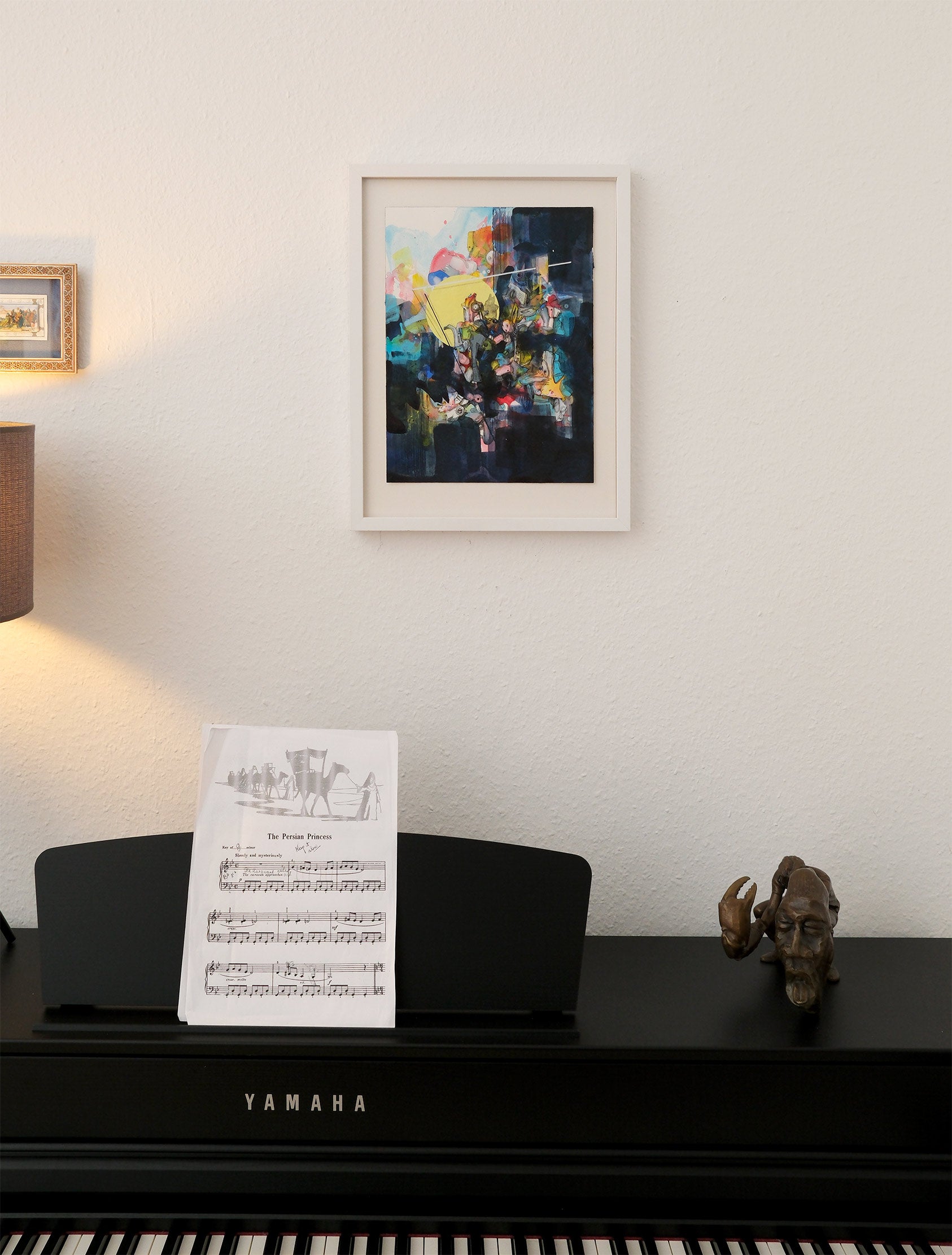 Gerahmt in 40cm × 30cm Rahmen (weiß) mit Abstandleiste.