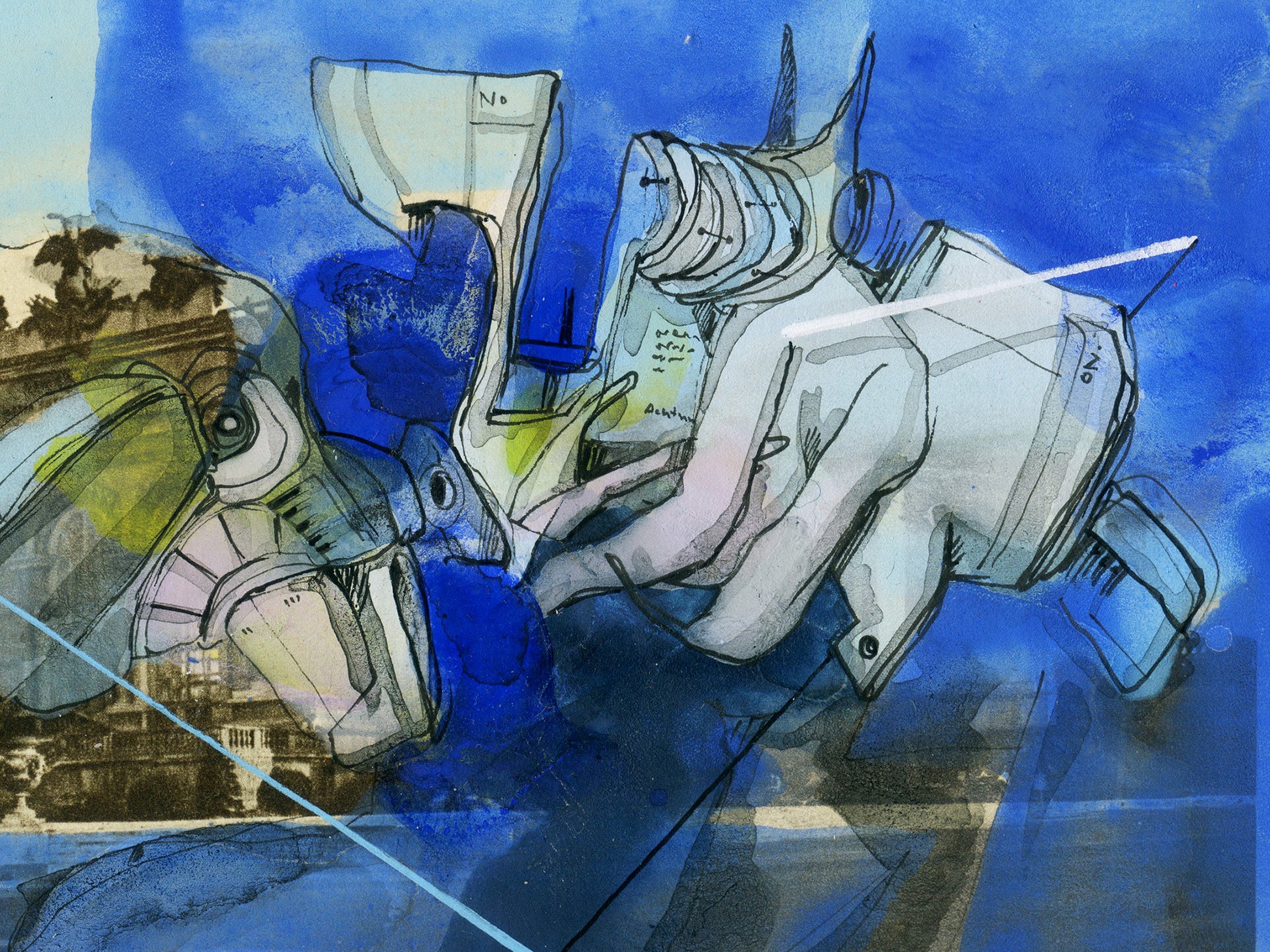 Aquarell/Acryl/Pigmenttinte auf Papier (Postkarte (Hamburg))
